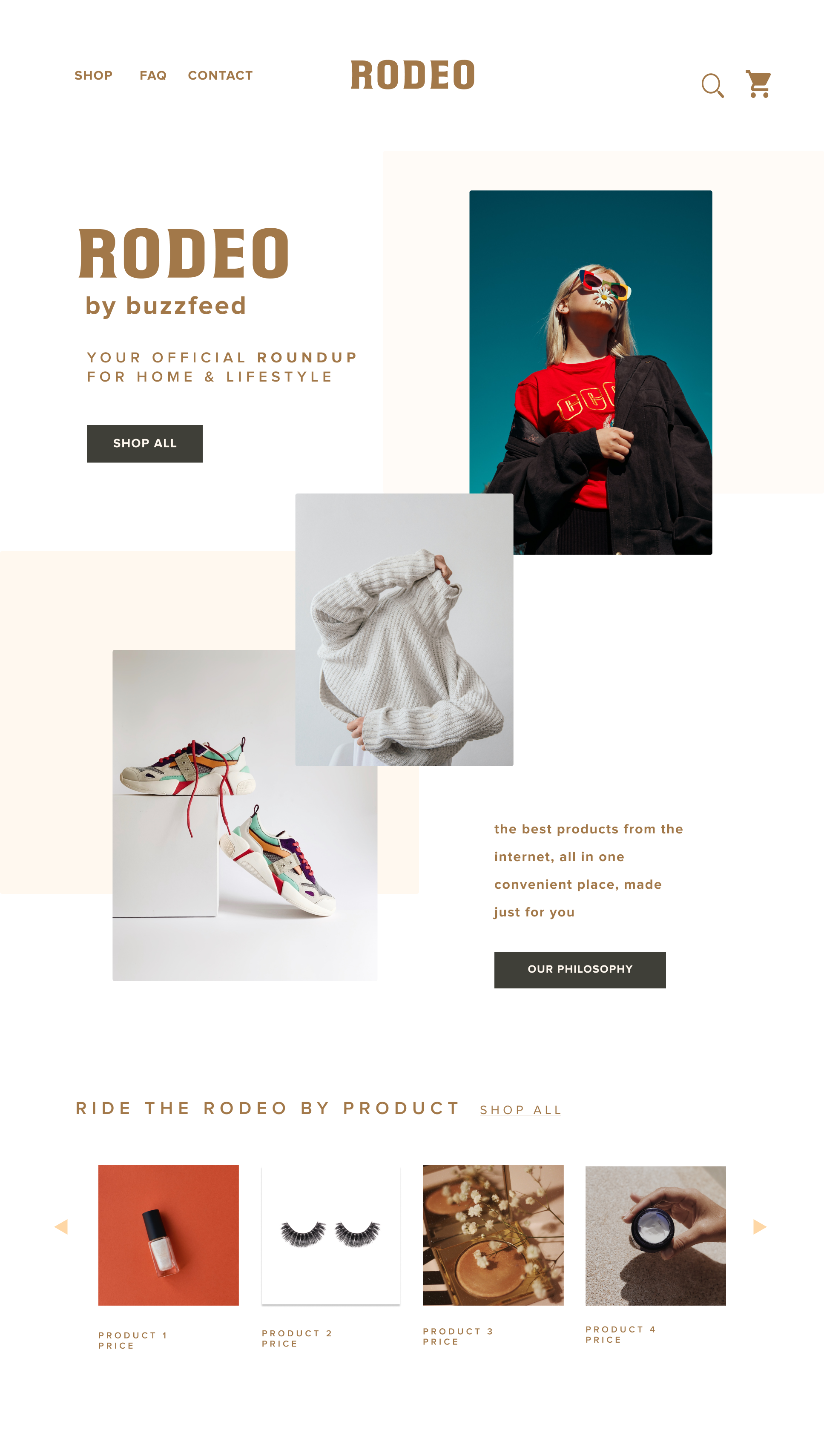 In 2021, market research within BuzzFeed Shopping revealed that audiences were increasingly interested in diversifying their retailer share of wallet and discovering emerging direct-to-consumer brands in a more intentional way. Rodeo was developed as a first-of-its-kind Shopify collaboration designed to aggregate high-quality DTC products under a single curated storefront.